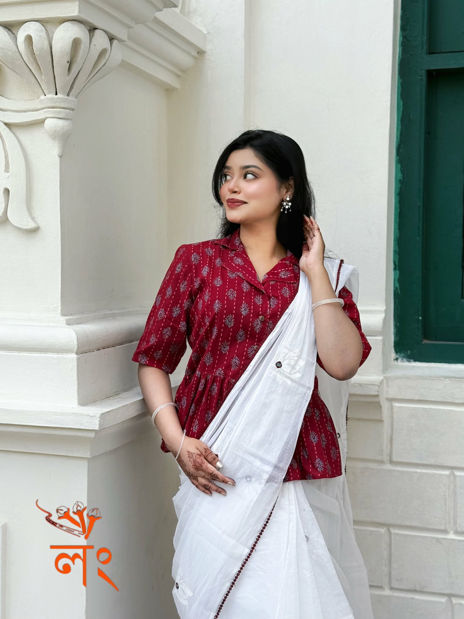 টপস বিবরন :- উন্নতমানের কটন কাপড়ে কাঠ ব্লক করা হয়েছে।