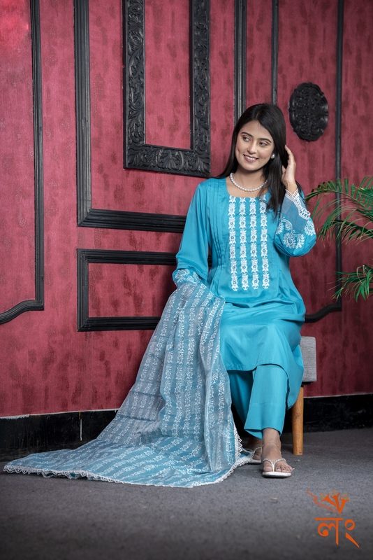 Category: THREE PIECEকোড:- অবন্তী ফেব্রিক :- টরে প্যান্ট : জামা & প্যান্ট একই ফেব্রিক। কাজের বিবরন :- প্রিন্ট সাথে এমব্রয়ডারি কাজ করা হয়েছে। স্লিভসে এমব্রয়ডারি কাজ করা হয়েছে।। ওরনা :আড়াই গজ টাংগাইল সেমি মসলিন ফেব্রিকে ডেইজি ফুলের মটিফে কাঠ ব্লক প্রিন্ট করা হয়েছে। সেই সাথে লেইস ওয়ার্ক করা হয়েছে সম্পুর্ন ওরনায়৷ 👉 ড্রেসটি স্টিচ থ্রিপিস। 👉 অল সাইজ এভেইলেবল।। সতর্কতা :- 🚫হাই হিটে আয়রন করা যাবেনা।। 🚫ডিটারজেন্ট ইউজ করে ওয়াশ করা যাবেনা।। ✅শ্যাম্পু ওয়াশ করতে হবে।। ✅লো হিটে আয়রন করতে হবে।। ✅লো হিটে শুকাতে হবে।। তাহলে অনেকদিন ব্যাবহার করতে পারবেন নতুনের মতো ❤️