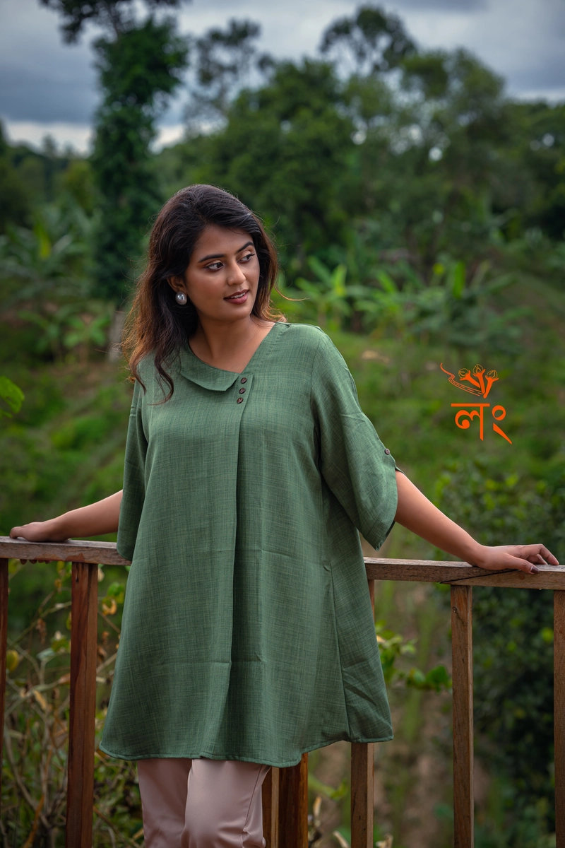 মডেলকে ওভার সাইজ পরানো হয়েছে। মডেলের রেগুলার সাইজ ৩৮, পরিয়েছি ৪৪ সাইজ। তাই প্লিজ আপনারা লুজ ফিটিং সাইজ টা নিজের মতো করে নিবেন।