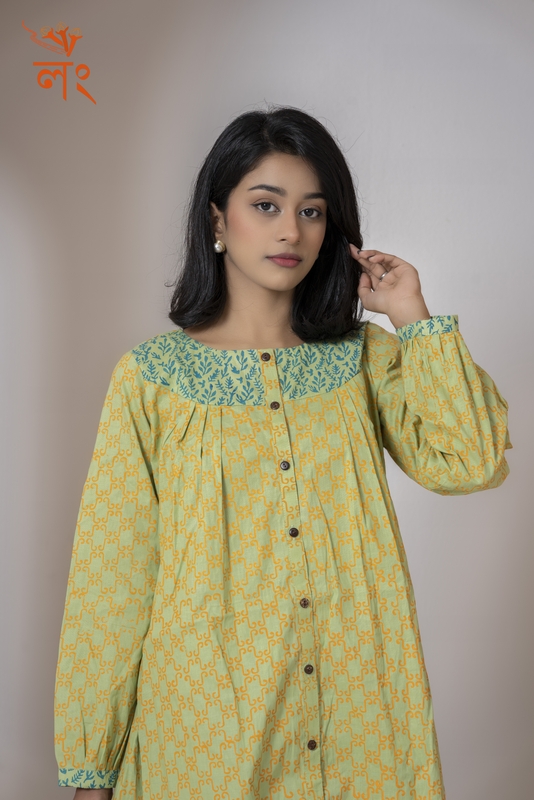 ফেব্রিক :- কটনকাজের বিবরন :- কটন কাপড়ে কাঠ ব্লক প্রিন্ট করা হয়েছে।।সাইজ :- ৩৬ টু ৪৬ এভেইলেবল।।লেন্থ :- 38
